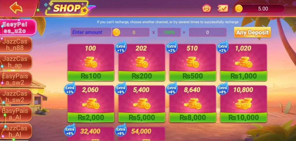 Deposit and withdraw your real money through Easy Paisa or Jazz Cash anytime and anywhere by using your smartphone. So, without a worldwide payment system, enjoy small withdrawals without any delay.